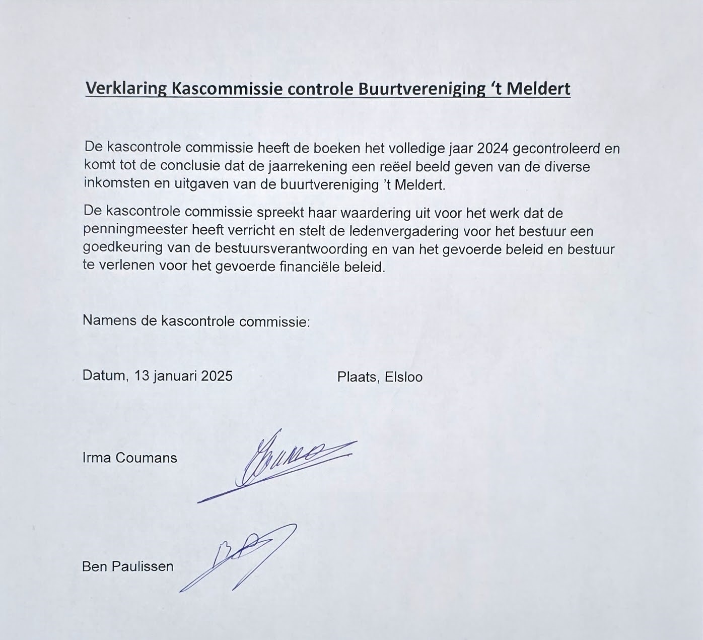 - Op 13 januari was de kascontrole. Deze werd akkoord bevonden.